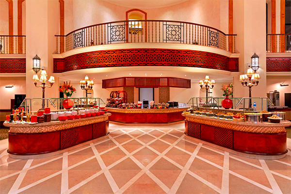 - La pension complète (petit-déjeuner, déjeuner et dîner) servie sous forme de buffet au restaurant principal,