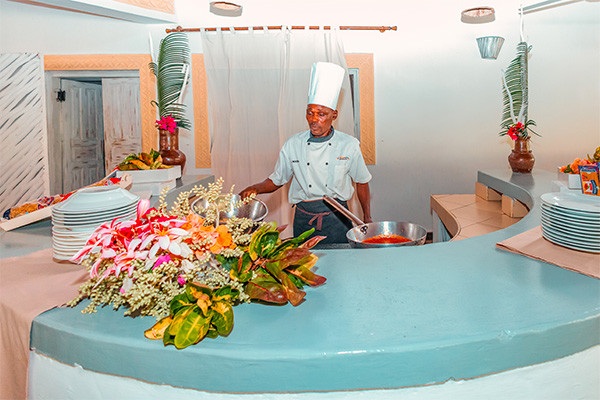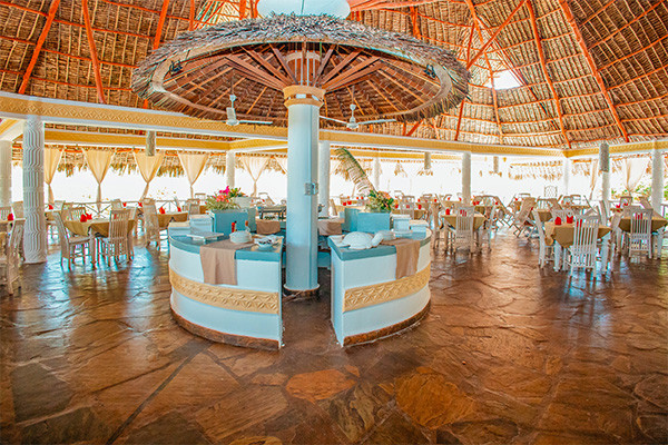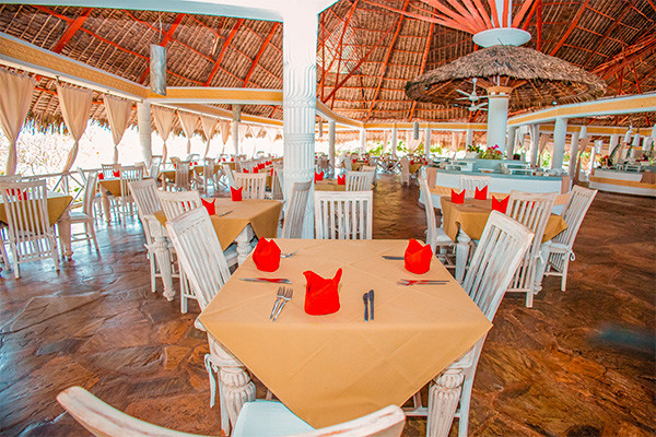 - Restaurant principal avec cuisine locale et internationale servie sous forme de buffet, il propose également des spécialités de poisson, une cuisine italienne ainsi que d'un dîner swahili hebdomadaire. Le restaurant dispose d'un grand espace ouvert dans le jardin tropical.