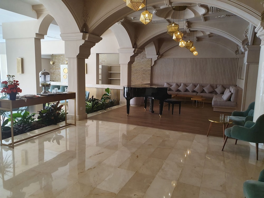 Cet hôtel est un hébergement tout compris. Les tarifs comprennent les repas et les boissons pris dans les restaurants et les bars sur place. Un supplément peut être facturé pour les repas pris dans certains restaurants, ainsi que pour certains repas, plats, boissons et services. Pendant votre séjour dans cet hôtel, vous trouverez sur place 3 restaurants et un café. Pour que vous puissiez faire connaissance avec les autres convives, l'hébergement vous invite à participer à une réception gratuite organisée tous les jours. Détendez-vous devant un verre au bar en bord de piscine ou dans un des 6 bars/lounges de l'hébergement. Un petit déjeuner buffet gratuit est servi tous les jours de 07 h 00 à 10 h 00.