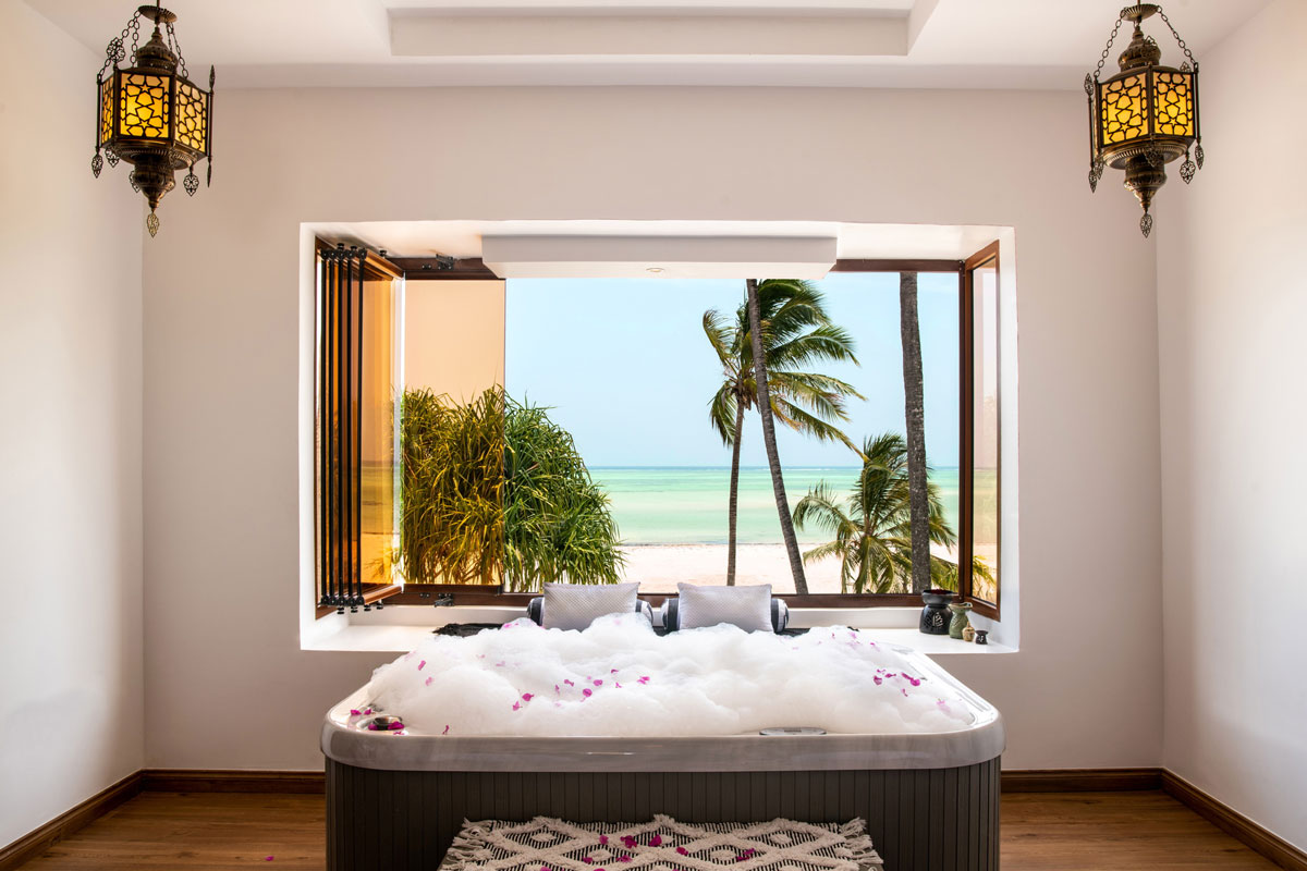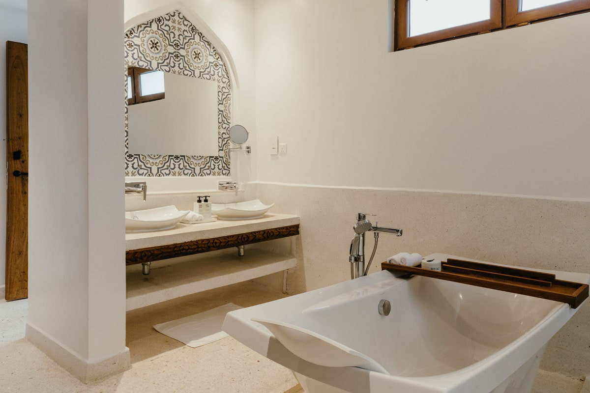 • L'établissement compte 90 chambres toutes imprégnées de nuances de blanc avec des accents en laiton et en bois, rendant hommage à l'influence arabe de l'île. Les sols en terrazzo fabriqués localement apportent une touche swahilie authentique.
