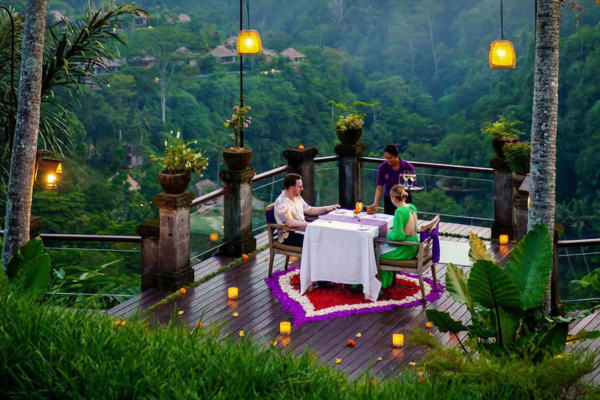 Petit-déjeuner. Matinée libre pour découvrir Ubud au grès de vos envies ou pour profiter des installations de votre hôtel (pas de guide ou chauffeur a disposition). Déjeuner libre. L’après-midi, découverte du marché traditionnel d’Ubud, riche en artisanat local. Continuation vers son Palais Royal, où vous visiterez la cour intérieure, seule partie accessible car la famille royale d’Ubud y vit toujours ! Visite de la célèbre Forêt des Singes. La forêt compte trois temples, des sculptures et de nombreux singes, à découvrir au détour des chemins... En fin de journée vous assisterez à un spectacle de danse traditionnelle. Dîner gastronomique au restaurant "The Bridges". Nuit à l'hôtel.
