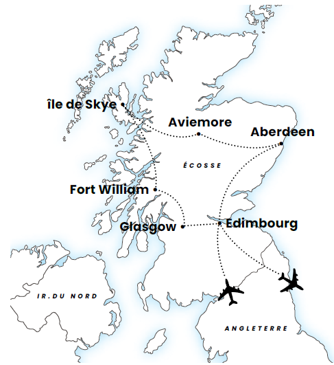 - Visite de villes et villages emblématiques : Edimbourg, Glasgow, St Andrews