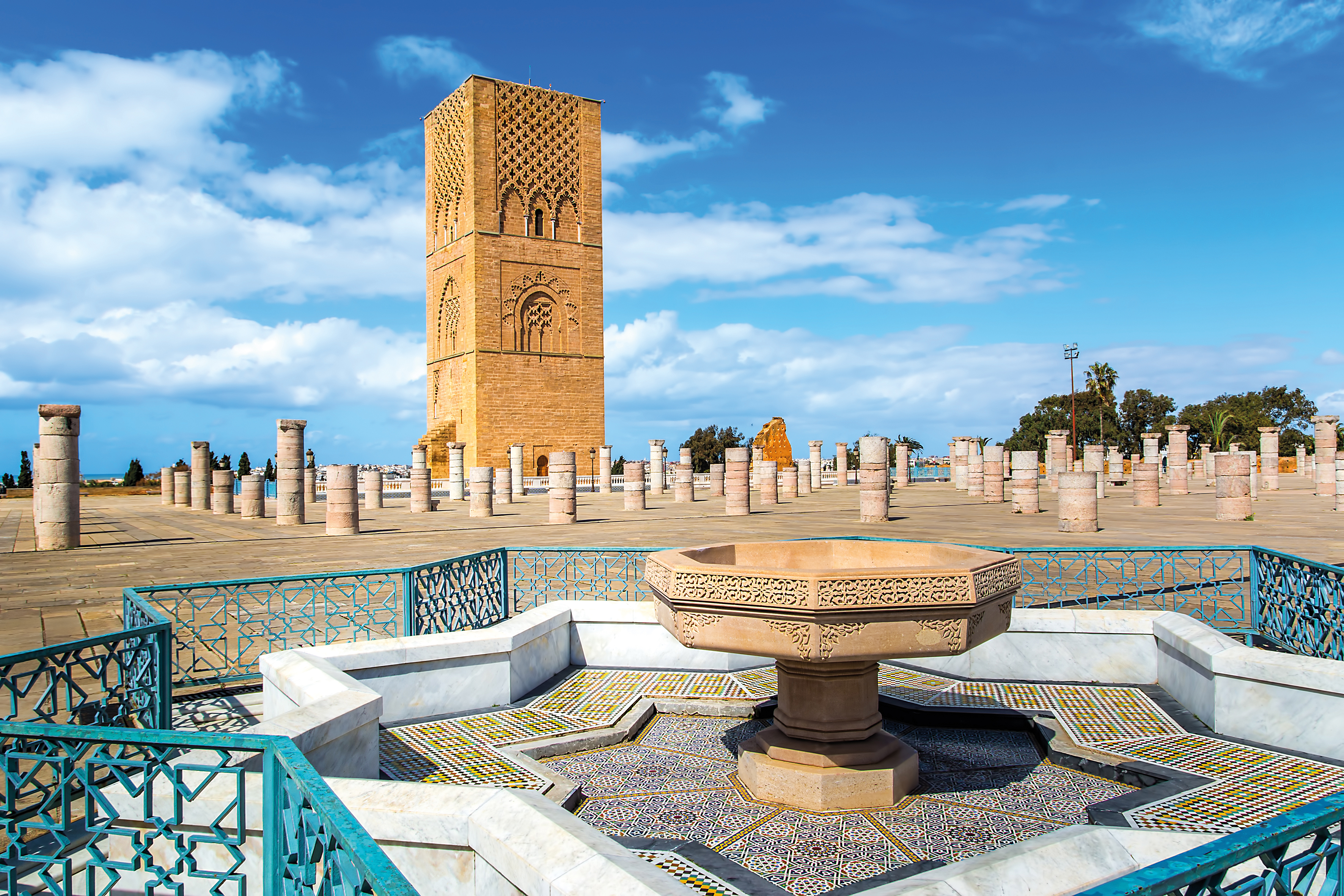 L’après-midi, excursion incluse : visite de Rabat. Ville impériale au bord de l’océan, Rabat jouit d’un riche passé historique. Vous serez sous le charme decette ville bordée par un long ruban de sable blond, ses longues avenues et les remparts dorés de la vieille ville enlaçant les maisons de la ville moderne à la blancheur éblouissante. Vous visiterez notamment la nécropole de Chellah, classé au patrimoine mondial de l’UNESCO, la tour Hassan et le mausolée Mohamed V, père de l’Indépendance du Maroc.