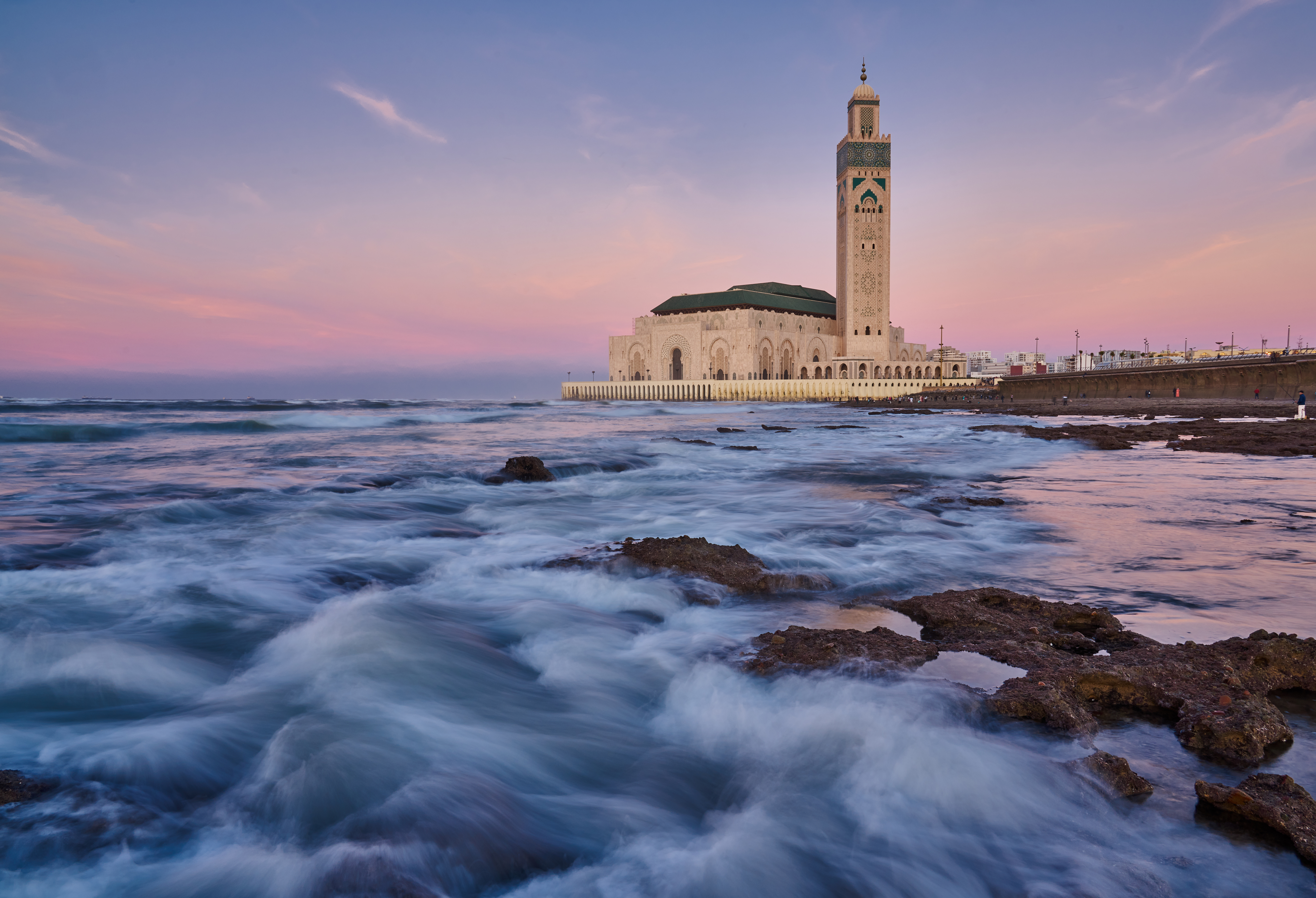 Le matin, excursion incluse : visite de Casablanca. Cette cité jeune et dynamique est une étape incontournable à la connaissance du pays. Elle allie tradition architecturale marocaine et urbanisme moderne. Vous découvrirez la place Mohamed V bordée de bâtiments de toute beauté où le style Art Déco s’est mêlé au style mauresque traditionnel. Vous admirerez notamment le palais de Justice (extérieurs), la Poste (extérieurs), la Wilaya (ou mairie, extérieurs). Puis, vous visiterez la mosquée Hassan II (intérieurs), la deuxième plus grande mosquée du monde ainsi que l’un des rares édifices religieux du Maroc à être ouvert aux non musulmans. Symbole de la grandeur de Casablanca, vous serez subjugué par ses volumes harmonieux et ses superbes détails. Partout où se pose votre regard, vous admirerez des motifs géométriques, des courbes entrelacées et des dessins floraux sculptés dans la pierre, typique de l’art mauresque. L’intérieur de la mosquée n’est pas en reste et vous appréciez son raffinement. Zelliges, bois de cèdre taillé, stuc ciselé et calligraphies se reflètent dans le marbre. Continuation dans le quartier des Habbous, riche d’histoires et de traditions. Dans ses étroites ruelles, bordées d’échoppes et de bazars, le temps semble s’être arrêté. Enfin, profitez d’une promenade libre sur la fameuse Corniche, une longue avenue d’où vous profiterez d'un beau panorama sur l'océan Atlantique.