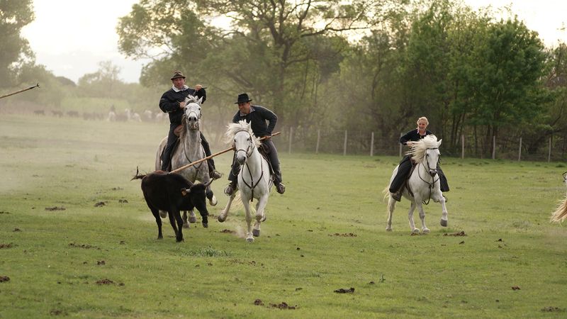 Visite d'une manade et démonstration du travail à cheval par les gardians, pasteurs cavaliers chargés de la surveillance et de la conduite des troupeaux. Issu de traditions médiévales, le métier de gardian s’est perpétué jusqu’à nos jours. Après la visite, une pause gourmande vous permettra de savourer les produits de l'exploitation.