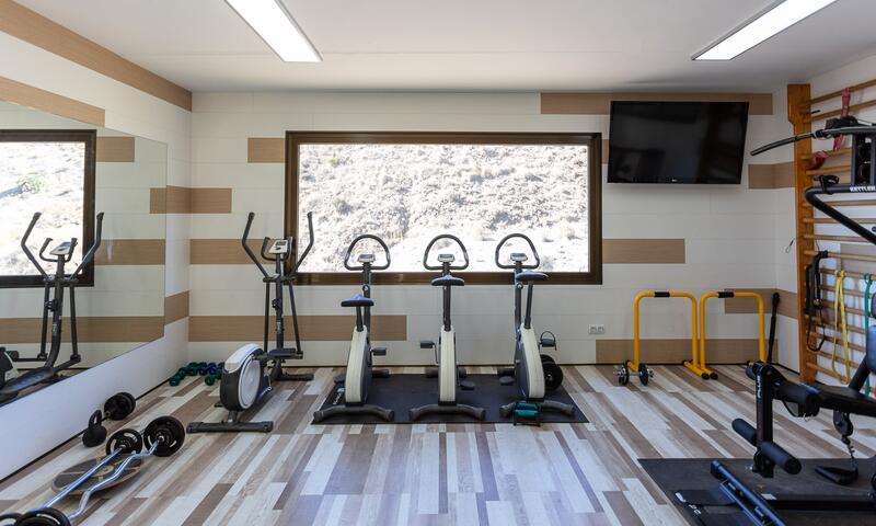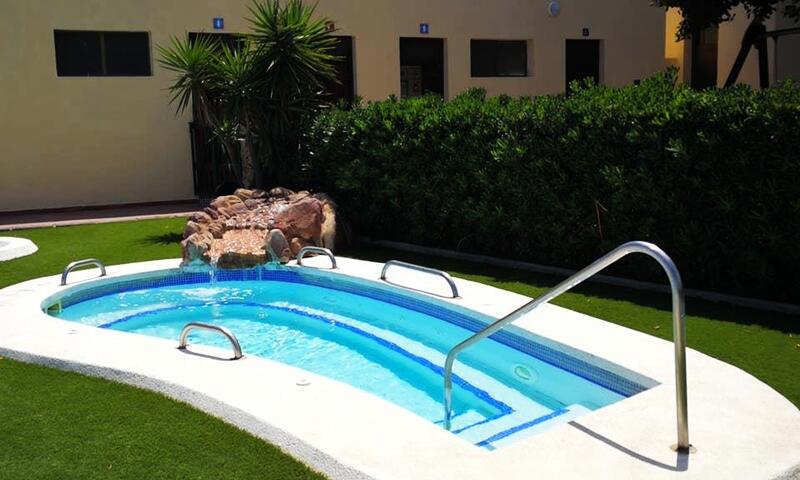 On y trouve aussi une grande piscine climatisée avec solarium, chaises longues, parasols... et également un superbe bains à remous avec hydromassage.