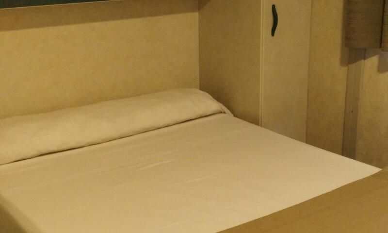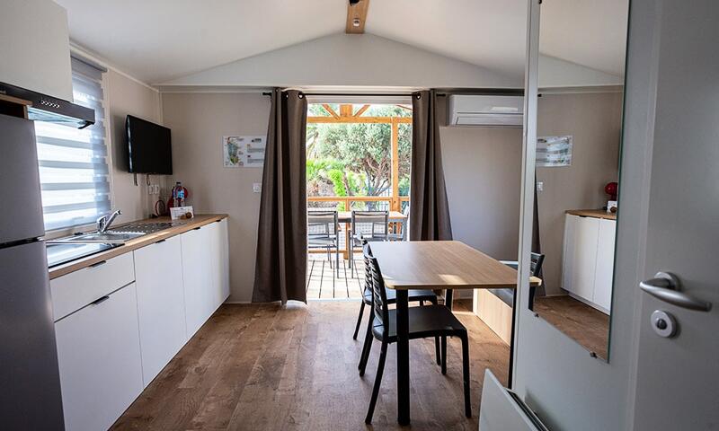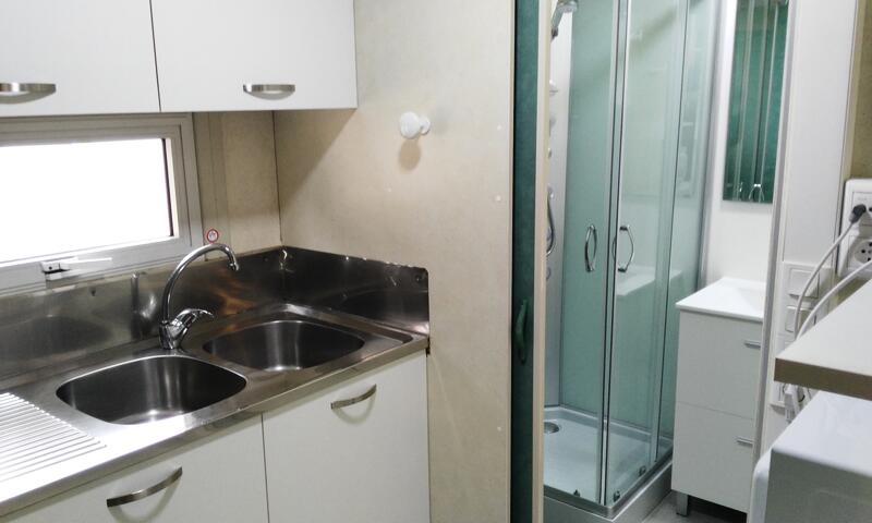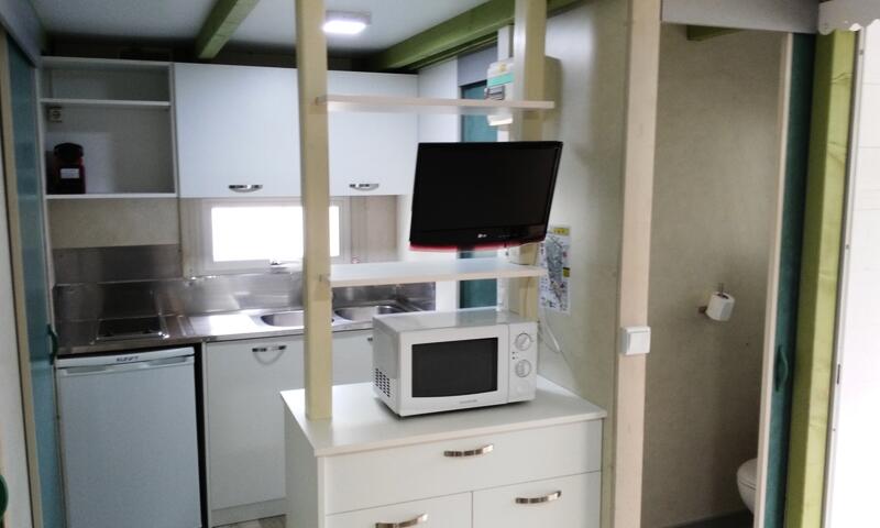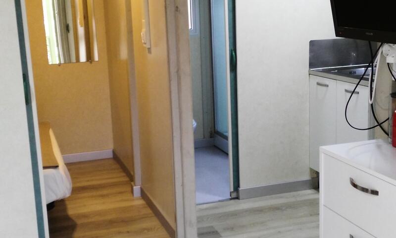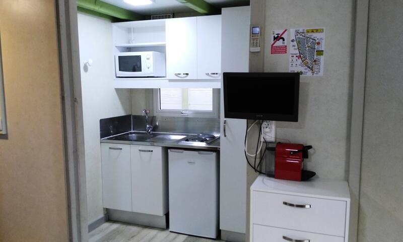 - Coin cuisine : plaque de cuisson, réfrigérateur, micro-onde, vaisselle/couverts