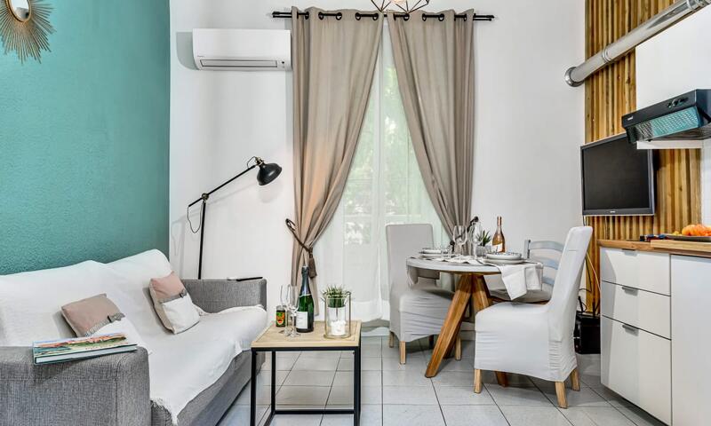 Dans 35m², l’appartement La Cigale vous offre tout le confort nécessaire avec une décoration industrielle et bois. Entièrement meublé et équipé, il peut accueillir jusqu’à 4 personnes avec un salon spacieux s’ouvrant sur la chambre avec une verrière. Un appartement sensible à l’environnement  puisqu’il est économe en énergie avec sa pompe à chaleur réversible et économe en eau grâce à sa robinetterie innovante.