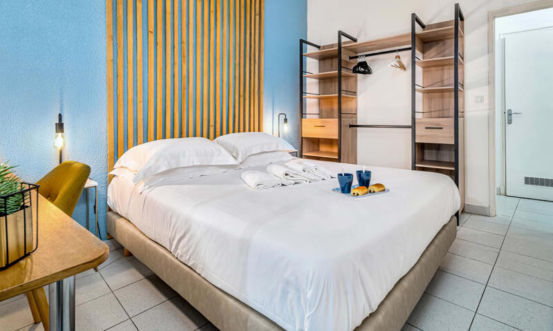 La chambre dispose d’un lit Queen size haut de gamme en 160x200cm pour un sommeil réparateur avec linge de lit et serviettes de bain, ainsi que d’une penderie avec cintres, planche et fer à repasser.