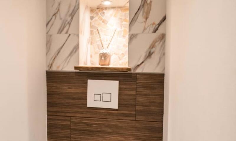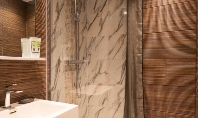 Une belle salle d'eau au design élégant et un wc indépendant.