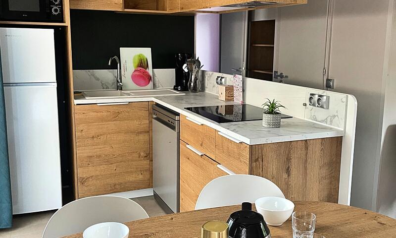 - Un séjour avec un coin repas et une banquette convertible en couchage, - 1 chambre avec un lit double,