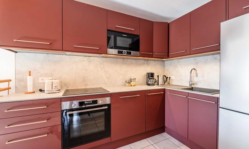 - Cuisine équipée ouverte (plaque de cuisson, micro-onde, réfrigérateur, grille-pain, bouilloire cafetière, lave-vaisselle, four, congélateur, appareil à raclette)