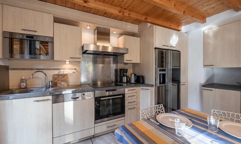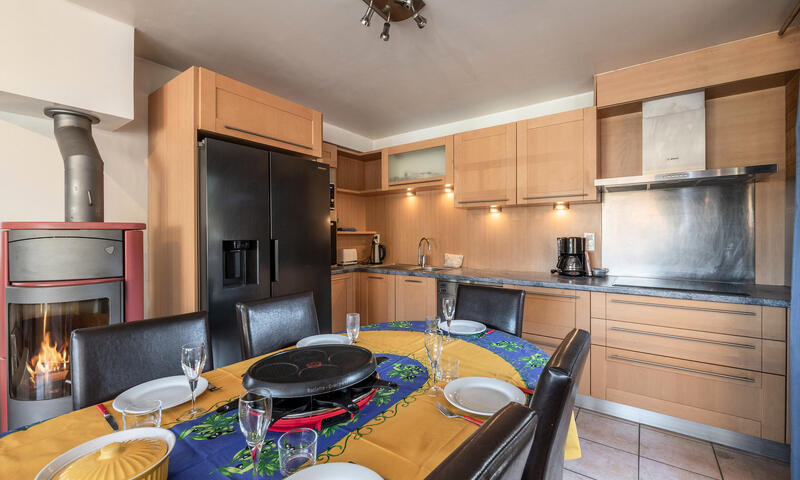 - Cuisine équipée (micro-onde, cafetière, lave-vaisselle, bouilloire, lave-linge, appareil à raclette, grille-pain, appareil à fondue, mixeur) ouverte sur séjour