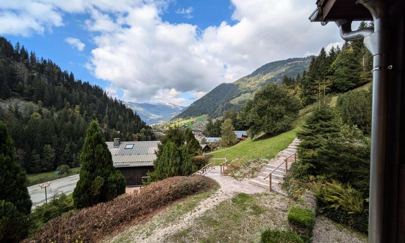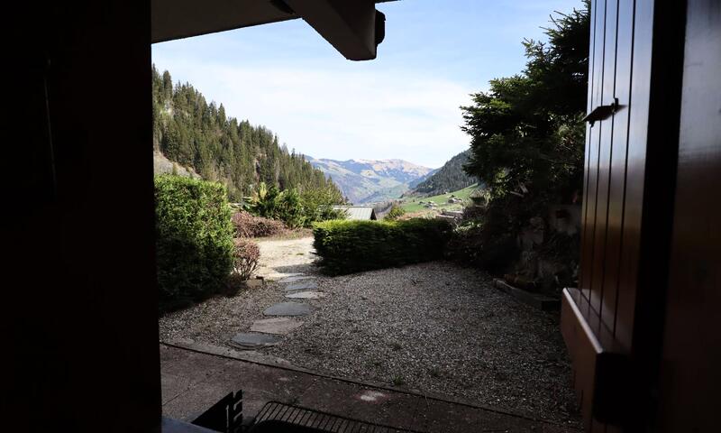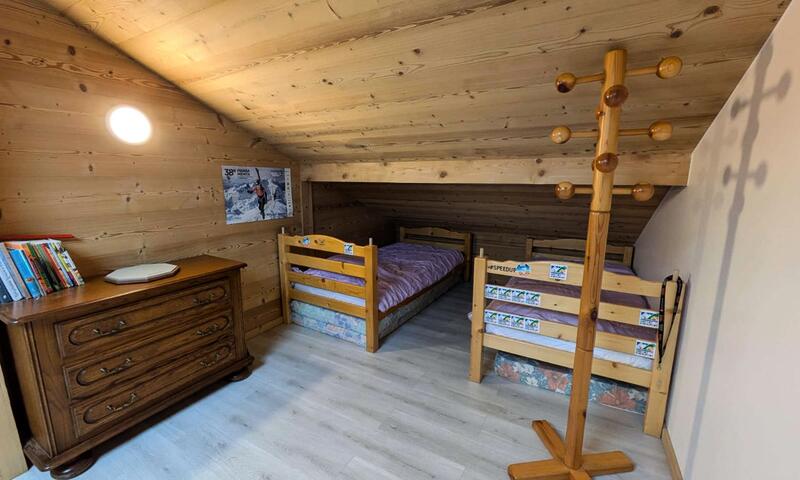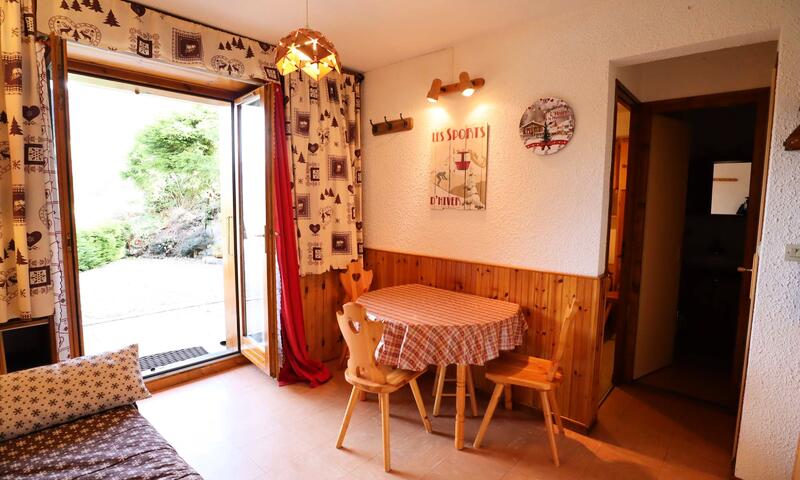 Appartement  T2  lumineux et cosy de 23 m² environ avec terrasse dans chalet de 6 appartements. Vue dominante sur montagne et village - séjour avec coin cuisine équipée lave-vaisselle - 1 chambre (1 lit 2 places 140 x 190) + 1 convertible gigogne (2x80 ou 160 x 190 dans le séjour - wc - salle de bains - terrasse N/E.