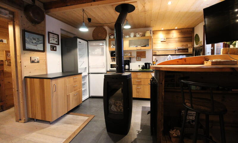 Mobilier ancien, décor bois, chalet très chaleureux et convivial.