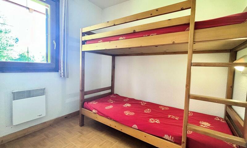 Situé au rez-de-jardin de la résidence (entrée située au deuxième étage), cet appartement comprend un séjour avec un canapé lit gigogne (deux couchages une place), une cuisine équipée ouverte sur la salle à manger et le séjour, une première chambre (inf. à 9m²) avec un lit double, une second chambre (inf. à 9m²) avec deux lits superposés une place, une salle de bains avec baignoire et un WC indépendant. Cet appartement bénéficie d'une terrasse en rez-de-jardin.