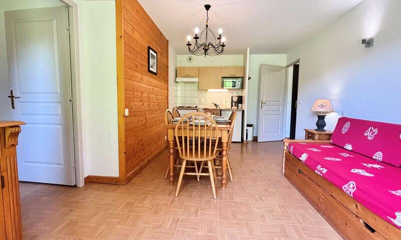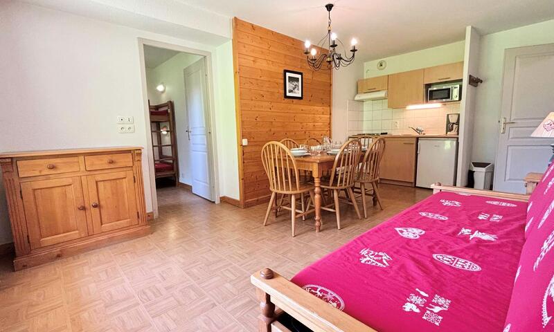 Situé au rez-de-chaussée de la résidence, cet appartement à la montagne d'une superficie d'environ 28m² comprend un séjour avec un canapé lits gigognes une place pour 2 personnes, une cuisine équipée ouverte sur la salle à manger et le séjour, une chambre avec lit double, une salle d'eau avec douche et WC.