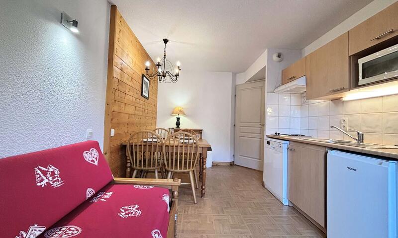 Situé au rez-de-jardin (étage -1) de la résidence, cet appartement à la montagne d'une superficie d'environ 29m² comprend un séjour avec un canapé lits gigognes une place pour 2 personnes, une cuisine équipée ouverte sur la salle à manger et le séjour, une chambre avec lit double (inférieur à 9m²), une salle de bains avec baignoire et un WC indépendant.