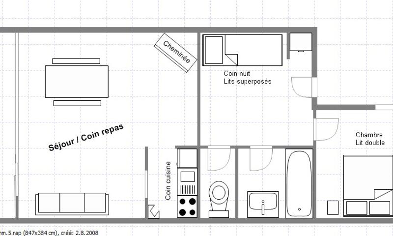 Appartement  classé ** de 33m², exposé sud,  situé dans un résidence proche de pistes et des commerces ainsi que du Vanoise Express (liaison avec LA PLAGNE). L'appartement est composé d'un coin nuit avec deux lits superposés, d'une chambre avec un lit double, d'une salle de bain avec baignoire et WC séparé, d'un coin cuisine ouvert sur un salon avec une banquette + lit gigogne.