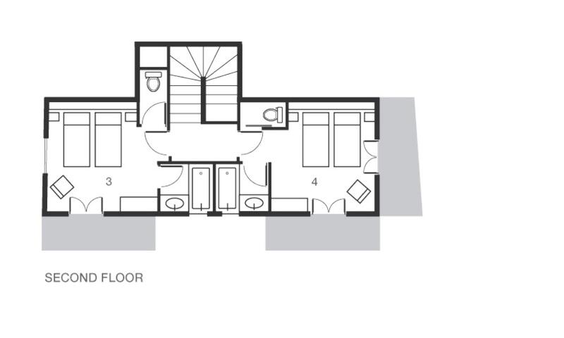 Deux chambres toutes les deux composées de deux lits simples pouvant se rapprocher pour utiliser en lit double, télévision, une salle de bains avec WC et un balcon.