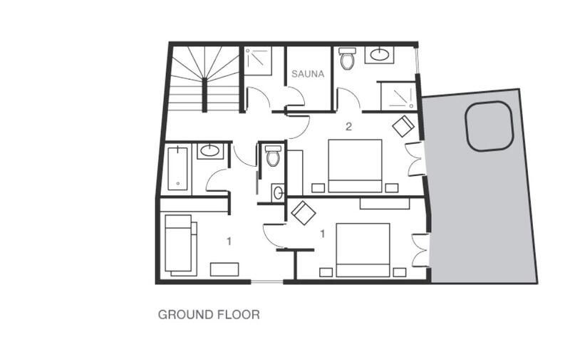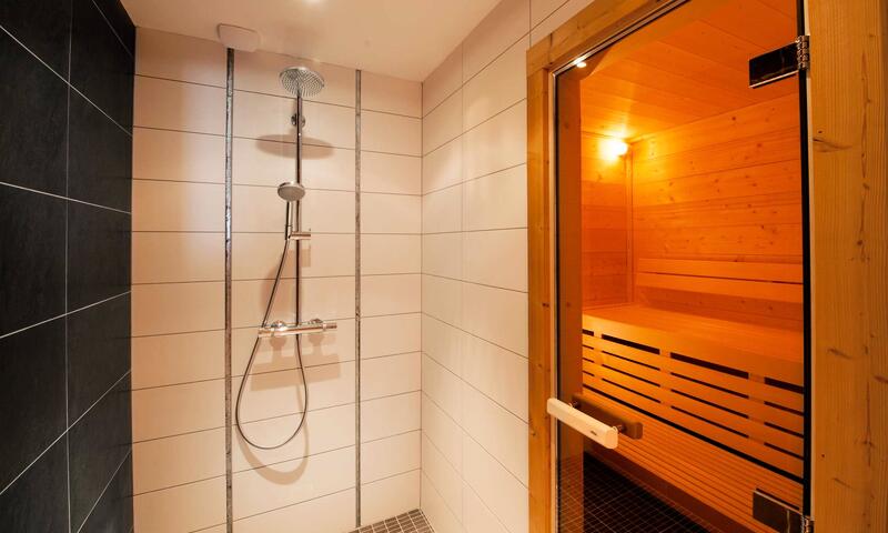 Un sauna avec douche, une chambre avec un lit double, télévision, salle de douche avec WC et balcon donnant sur le SPA extérieur, une suite familiale avec deux lits superposés + une chambre avec lit double de 160, TV et balcon donnant sur SPA extérieur, une salle de bains et un WC .