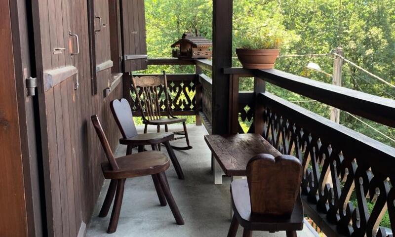 L'appartement est au 2ème étage. Il offre une exposition Ouest et possède un balcon avec une jolie vue sur le Mont-Joly, la chaîne des Aravis et tout le village.