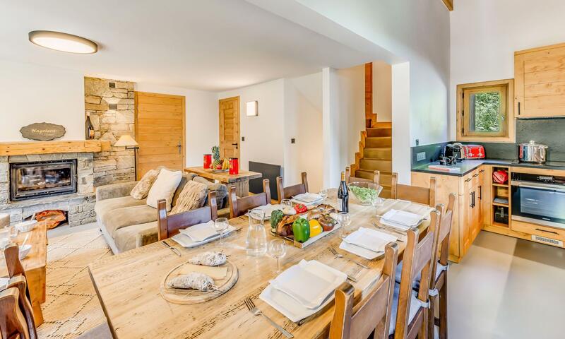 Le chalet Napoléon - 108m2 - 6 pièces 10 personnes. Gamme CHALET dispose de 5 chambres chacune avec salle de bain, d'un bains à remous, il est situé à 200 mètres des remontées mécaniques et du centre du village par un ascenseur qui relie le quartier du Belvédère où se situe le chalet au centre du village (commerces, bars, restaurants...) et aux remontées mécaniques (télécabine des Brévières). Il bénéficie d'une vue époustouflante sur les montagnes et les pistes.