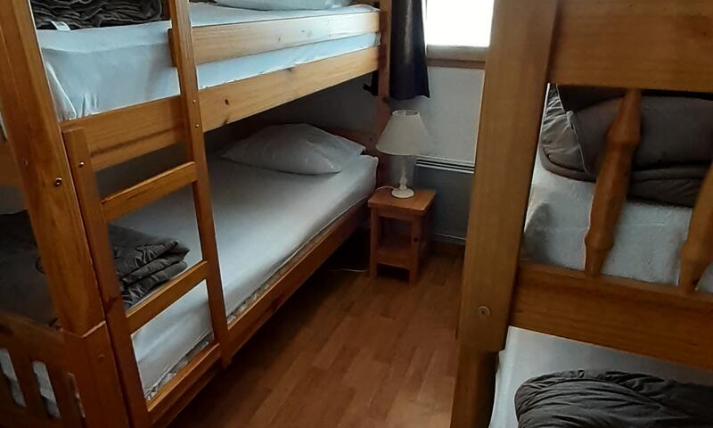 - Un coin montagne (sans fenêtre) avec 2 lits simples superposés, séparé de la pièce de vie par un rideau opaque.