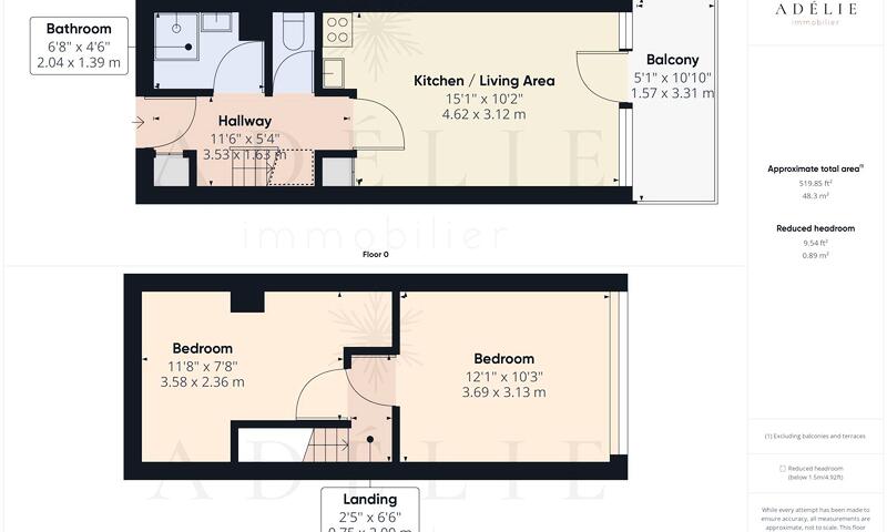 Mezzanine sous les 1m80: Lit double 160cm x 200cm.