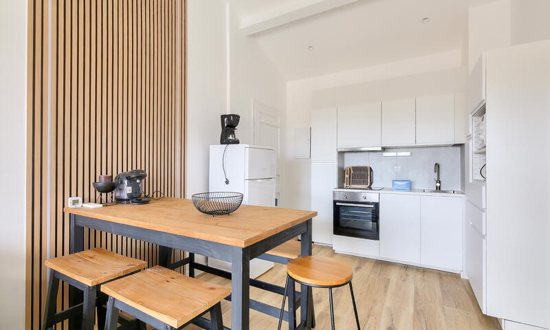 Votre location de vacances comporte : 1 séjour, 1 cuisine, 2 chambres, 1 salle de bain, 1 WC séparé, 1 balcon et 1 place de parking.