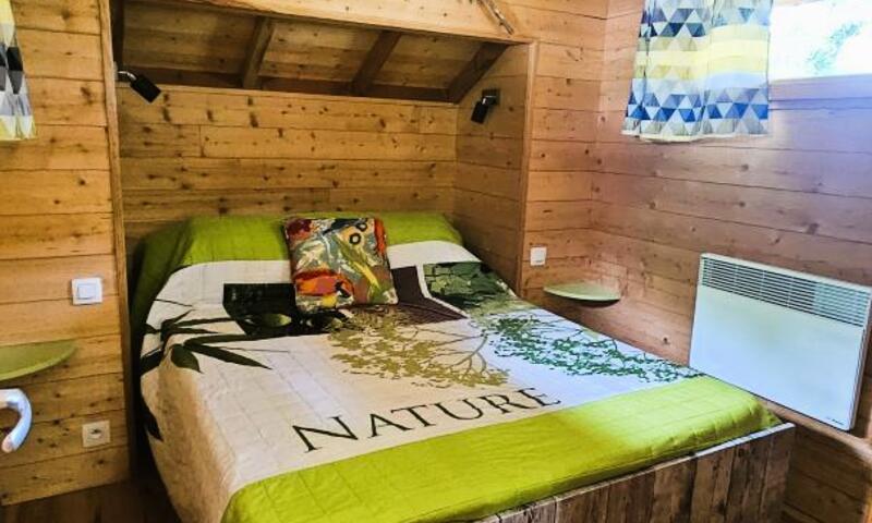 1 chambre avec 1 lit 2 places, coin cuisine, canapé, salle d'eau, wc, chauffage. Terrain de 600 m² environ. Terrasse close.