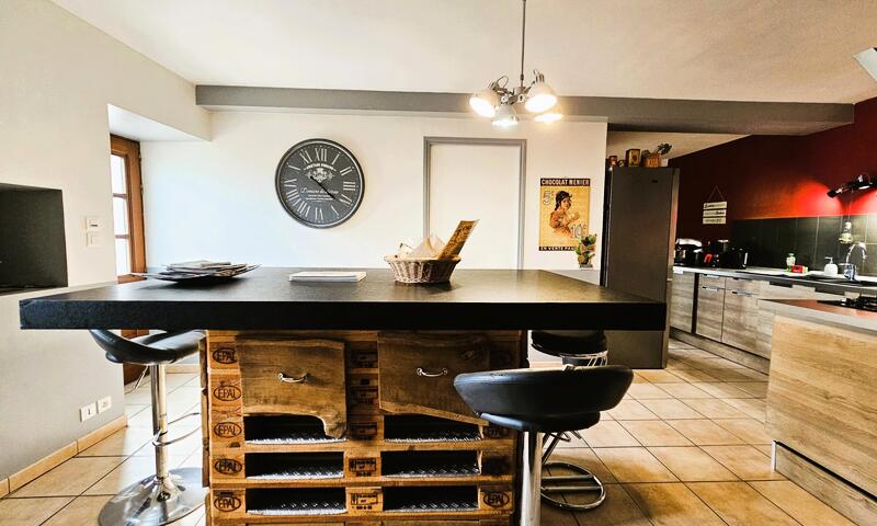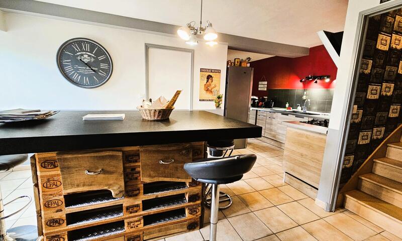 La maison de plain-pied se compose, au rez-de-chaussée, d'une agréable cuisine équipée dotée d'un poêle à bois, d'une chambre avec un lit double, d'une salle d'eau et d'un WC séparé.