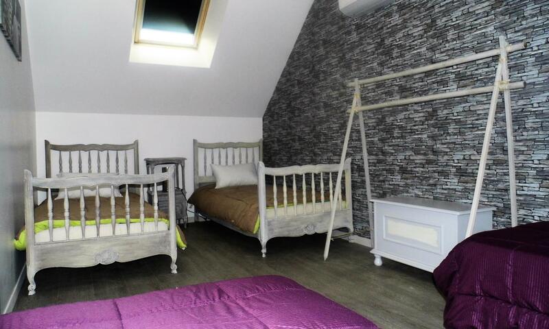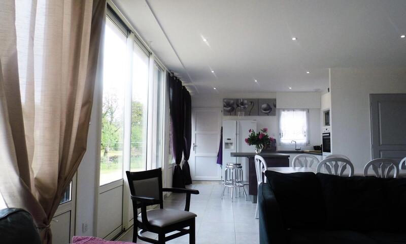 Gîte disposant d'un séjour spacieux et très lumineux grâce à de grandes baies vitrées, cuisine moderne entièrement équipée, 3 chambres (1 chambre 2 personnes au rez de chaussée lit de 160, 1 chambre 2 personnes à l'étage lit 140, 1 chambre - dortoir de 4 personnes, 4 lits de 90), 2 salles de douches (1 au rez de chaussée et 1 à l'étage), 2 WC (1 au rez de chaussée et 1 à l'étage), terrasse avec salon de jardin, barbecue et jardin. Capacité de 2 à 8 personnes. Possibilité de louer l'hébergement pour seulement 2 personnes (rez de chaussée du gîte). La chambre au rez- de-chaussée permet l'accès aux personnes à mobilité réduite.