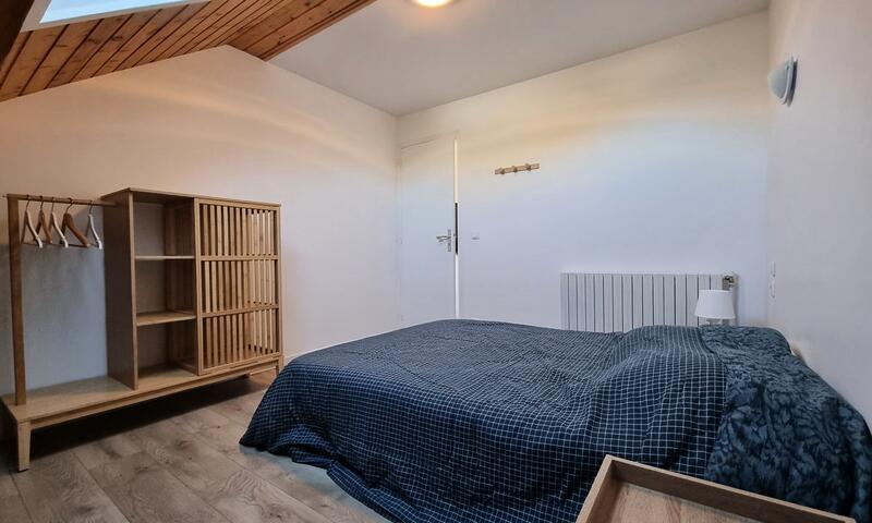 Une salle de bains avec une machine à laver et des WC indépendant. Une chambre double avec un lit en 140 et placard, une seconde chambre avec 2 lits superposés en 90 et 2 placards. L'appartement dispose d'un casier à skis et d'un emplacement parking.