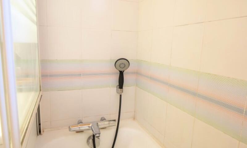 Une chambre avec lit double et un coin montagne dans l'entrée avec lits superposés. Une salle de bain avec baignoire et des WC séparés complète l'appartement.
