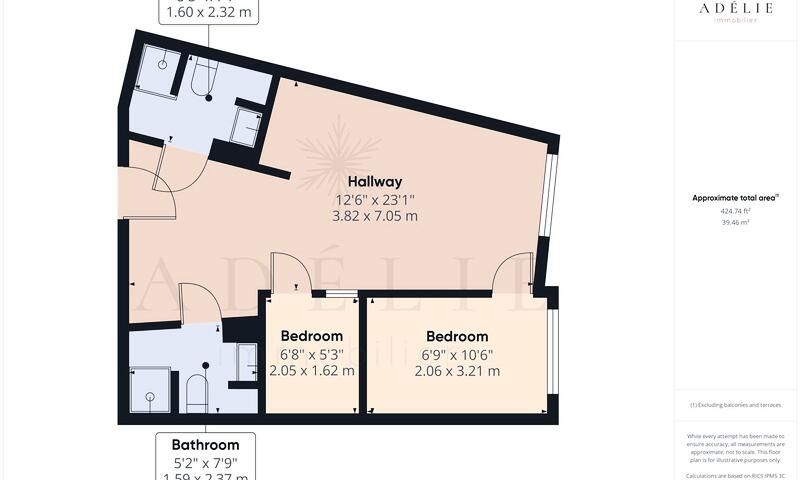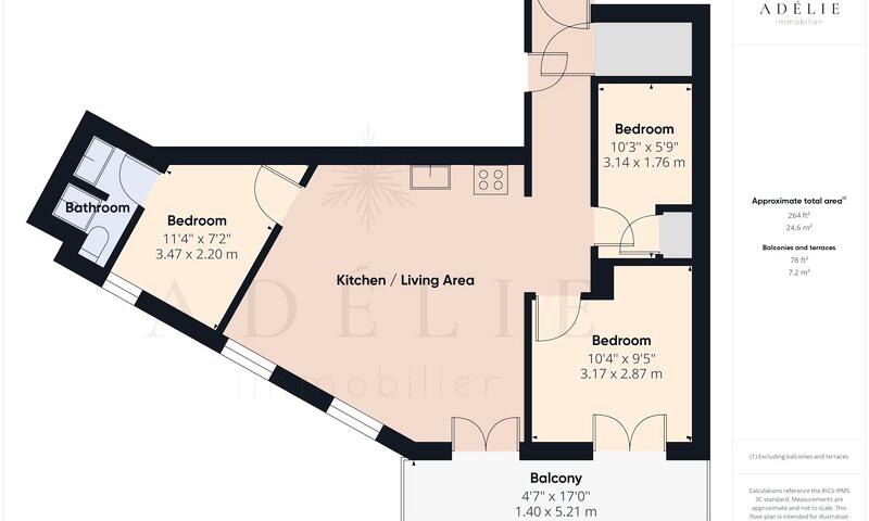 LUMINEUX 3 PIECES AU DERNIER ETAGE CENTRE STATION