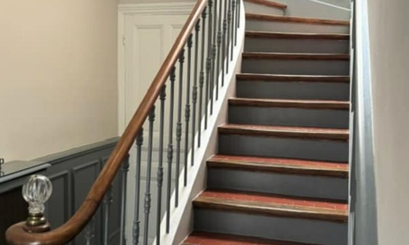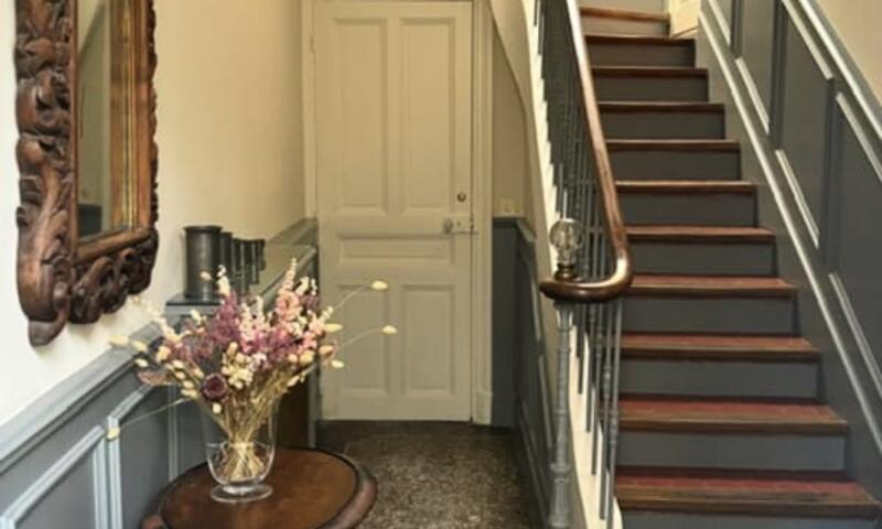 Une belle chambre avec salle d'eau est située au rez-de-chaussée, tandis qu'à l'étage, vous trouverez un grand espace de détente décoré avec goût, ainsi qu'un coin bureau et deux chambres.