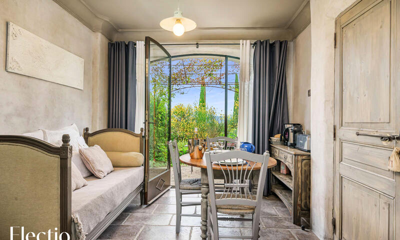 Les extérieurs de la résidence sont magnifiquement aménagés pour vous offrir une expérience authentique de la Provence. Vous y trouverez des espaces ombragés avec pergolas, des rideaux blancs, des platanes et des bancs en pierre pour vous détendre. Un barbecue au charbon de bois est à votre disposition, avec possibilité d’acheter du charbon dans un supermarché à proximité. La végétation typiquement provençale, composée d'oliviers centenaires, de genêts, de lauriers roses et de lavandes, crée une atmosphère envoûtante. Une fontaine et un clocher apportent un charme supplémentaire à l'ensemble.