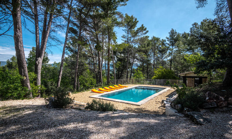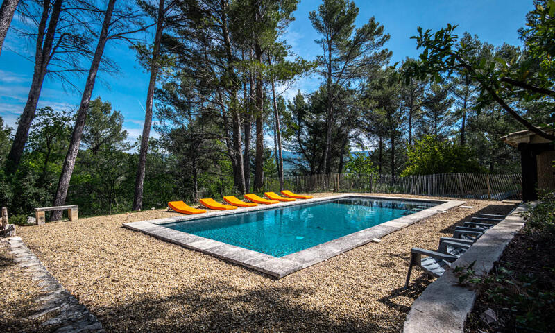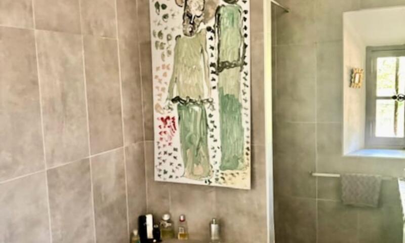 A l'ombre des pins et des chênes verts, nichée à Roussillon sur une colline d'ocre privée, à 7 minutes à pied du coeur du village, mas provençal en...