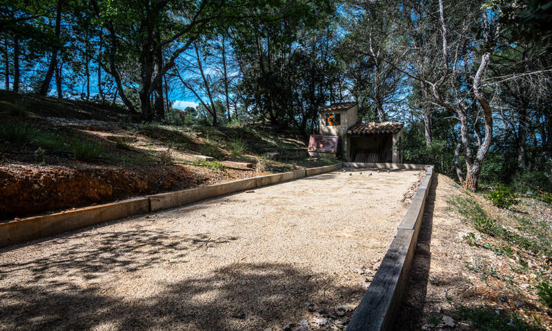 Différents coins terrasse ont été aménagés dont une avec vue imprenable sur le coucher du soleil face aux ocres et au village et un superbe boulodrome.