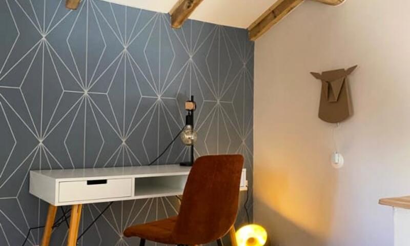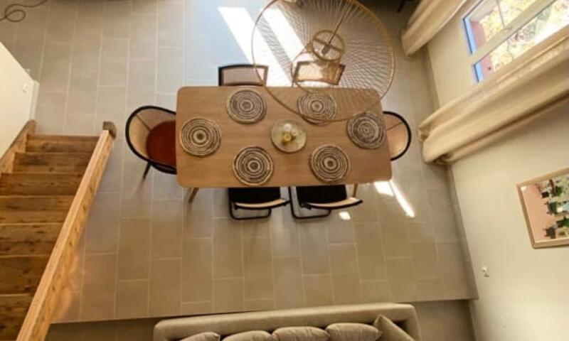 Rénovée en 2022, la maison de 110 m² dispose d'une cuisine neuve et équipée, d'un vaste séjour et d'une salle à manger. Les hauts plafonds, les poutres apparentes, et la mezzanine ajoutent du caractère.