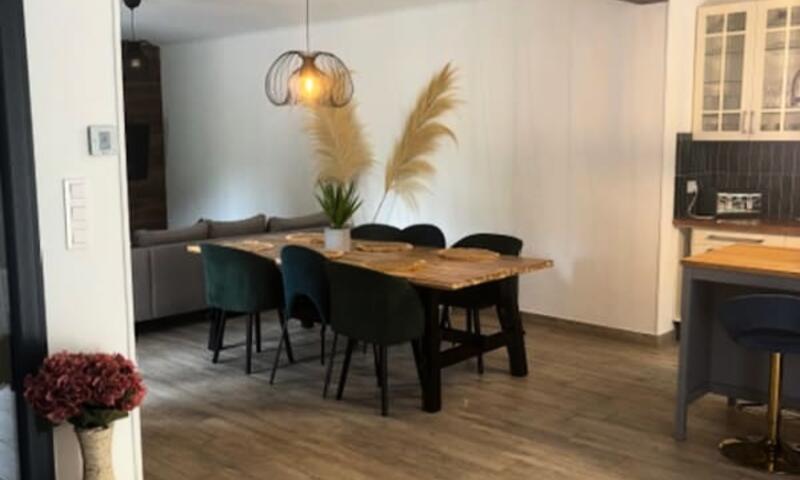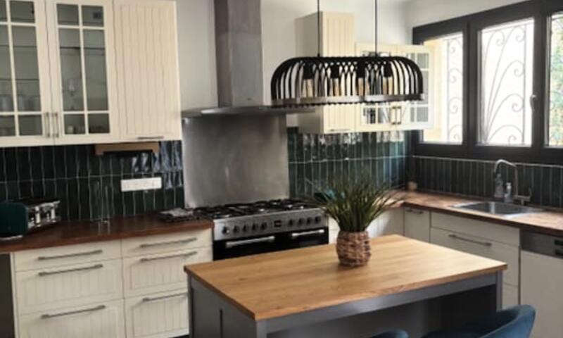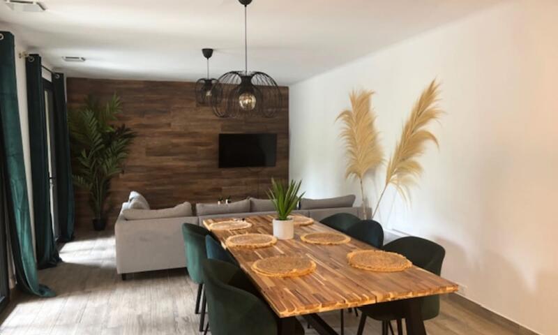 Cette maison de 100m2 est composée d'un salon avec télévision, salle à manger et cuisine ouverte entièrement équipée et aménagée. Elle dispose de 3 chambres confortables avec chacune la télévision et la climatisation, ainsi que d'une salle de bain avec douche.