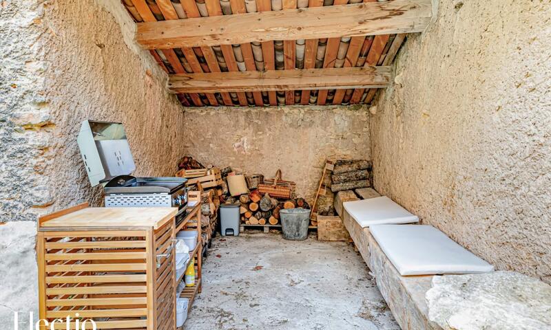 La cuisine, à la fois fonctionnelle et charmante, comprend une pierre ancienne taillée en guise d'évier, une plaque vitrocéramique, un four, un micro-ondes, un réfrigérateur, et tous les ustensiles nécessaires pour préparer de délicieux repas. Elle est également équipée d'une machine Nespresso, d'une cafetière à filtre, ainsi que d'une bouilloire et d'un grille-pain. Un vaisselier en chêne contient un ensemble complet d'art de la table, avec de la vaisselle et de la verrerie pour toutes les occasions, des grands verres à vin aux verres à cocktail. Les repas peuvent être partagés autour d'une authentique table de ferme en bois, parfaite pour savourer vos plats mijotés ou simplement un café ou un thé. La cuisine offre également un accès direct à la terrasse nord.