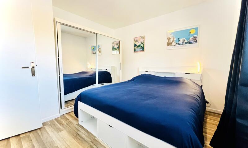 La chambre, spacieuse et agréable, dispose d'un lit double en 160 cm et offre des rangements pratiques. Elle offre un véritable espace nuit indépendant, parfait pour se reposer après une journée à la plage ou de balades dans la région.