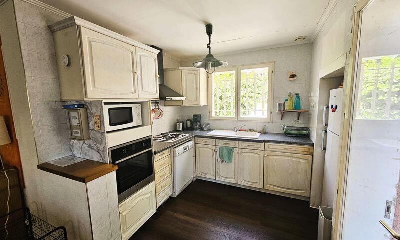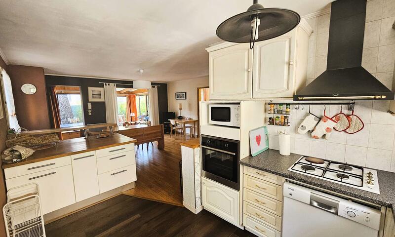 - 3 feux gaz + 1 électrique, hotte aspirante, four micro-ondes, four, lave-vaisselle, réfrigérateur + congélateur, lave-linge, cafetière à filtre, grille-pain