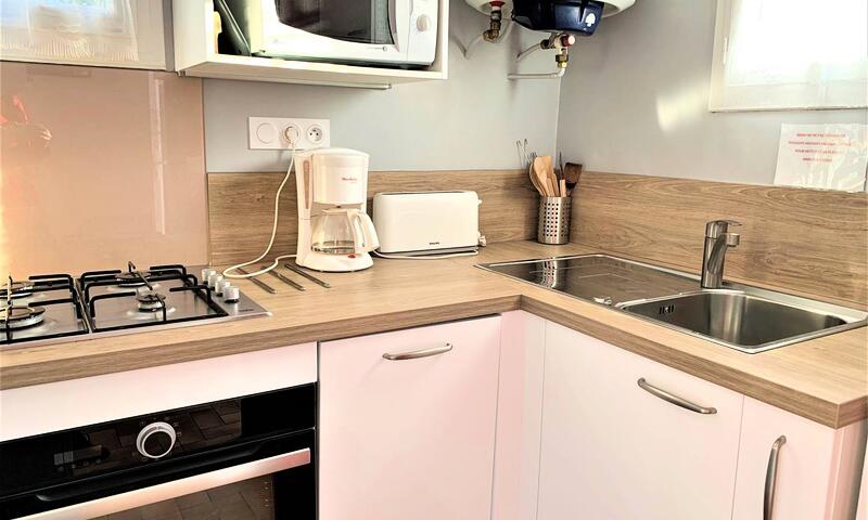 - une petite cuisine équipée (gazinière, four, micro-ondes, réfrigérateur, lave-vaisselle, cafetière, bouilloire, grille-pain),
