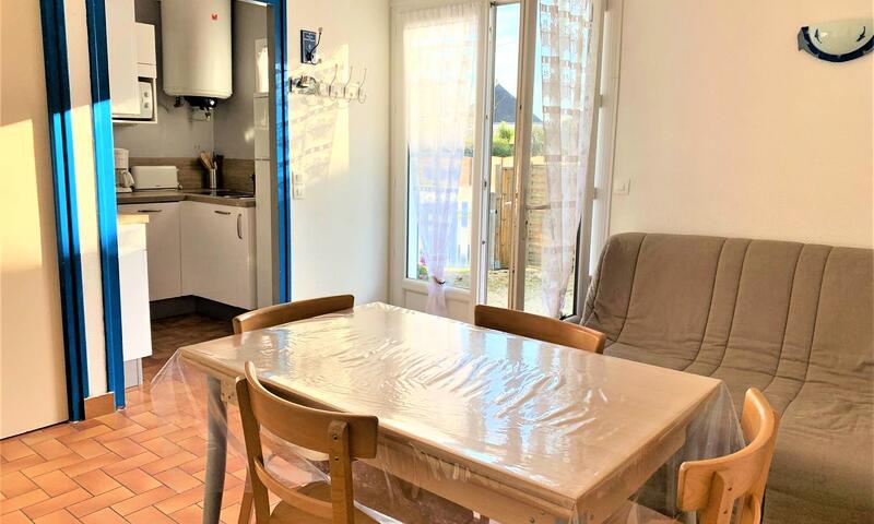 Petite maison mitoyenne de type deux pièces d'environ 25m² pour 4 personnes, porte n°2 située entre le village de Kermorvant et Port-Haliguen côté baie, dans un quartier calme à deux pas de la plage du Castéro.