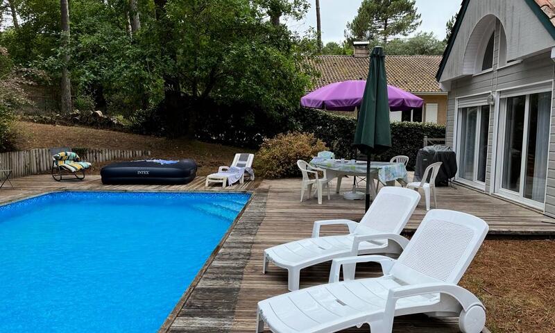 Située sur le Domaine du Golf, villa de 95m2 avec 3 chambres pour 6 personnes sur un terrain boisé non clôturé de 1400m2, terrasse avec mobilier de jardin et Piscine de 8.5x4m, sécurisée par une alarme. Wifi. Possibilité de se garer sur le terrain.