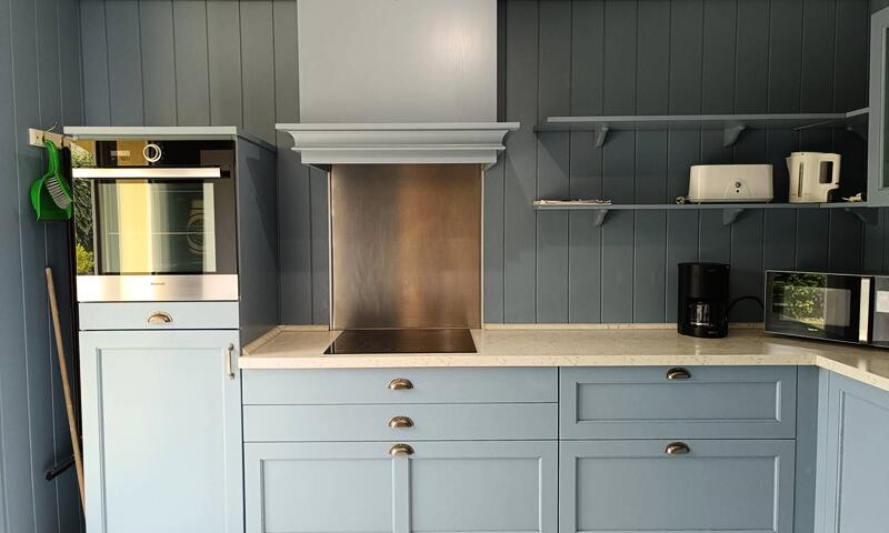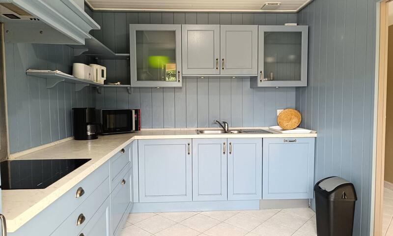 Entrée par jardin, large hall qui dessert : cuisine séparée équipée (Réfrigérateur/Congélateur, lave vaisselle, hotte, plaque de cuisson vitrocéramique, four multifonctions et micro-ondes..), séjour/salon avec canapé convertible en 140 et TV, salle d'eau avec douche italienne et meuble double vasque, W.C indépendant. Lave linge dans le garage.