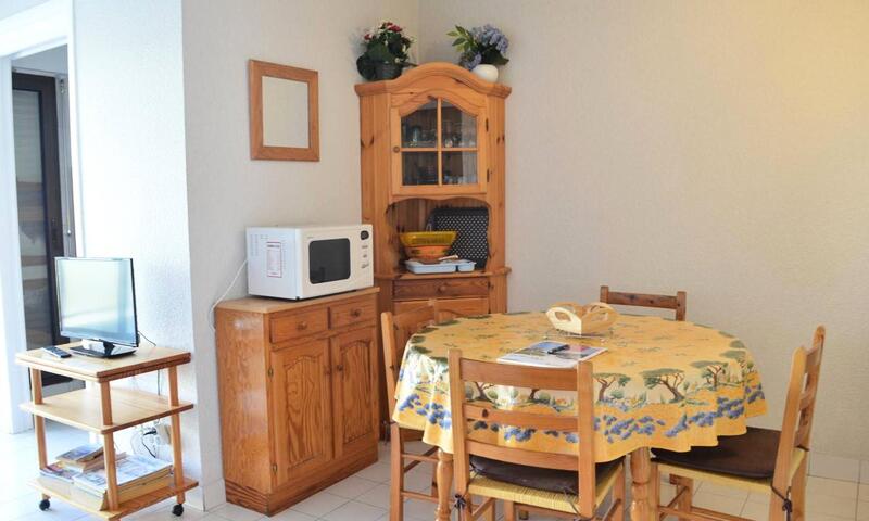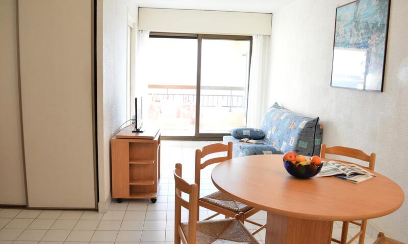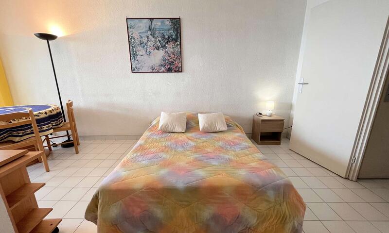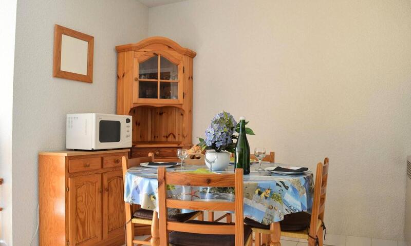 Cette location studio vacances située au 3e étage se compose d'une entrée, un séjour avec un canapé lit 2 personnes, , un coin cuisine équipé, une cabine avec  lits  superposés,  une salle de bains et un WC .